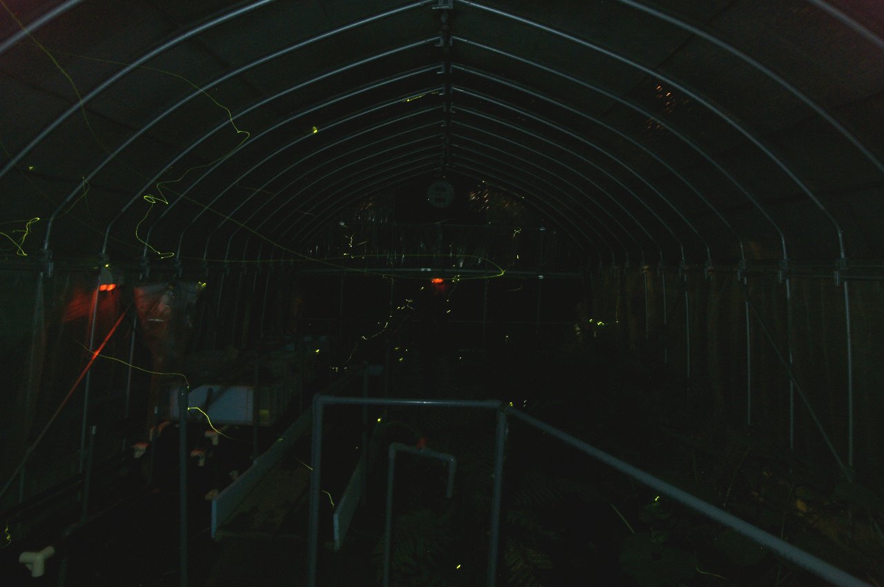 5月23日にUPしたハウス内のホタル動画と比べると、光る間隔も違いますし、同時に明滅しません。