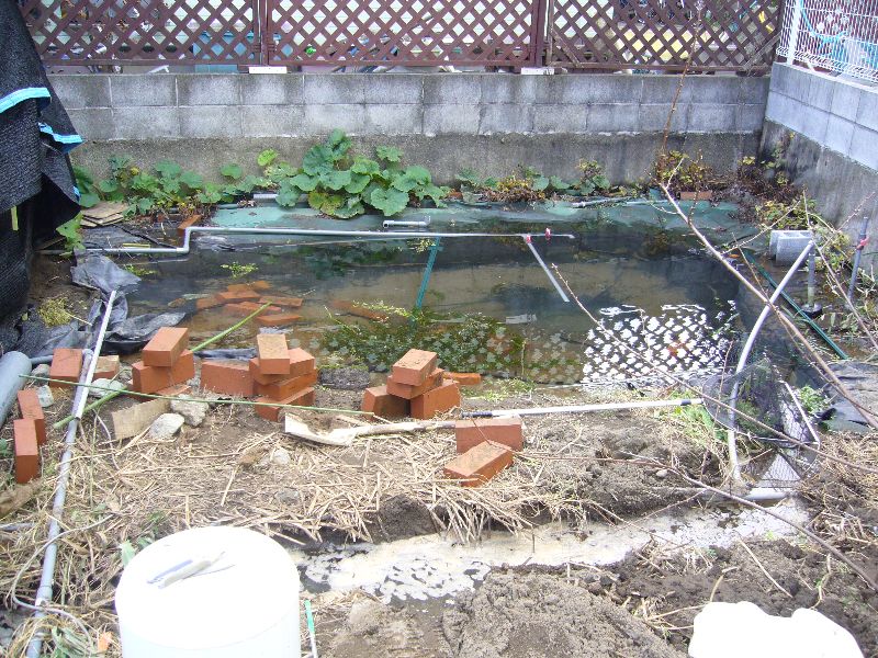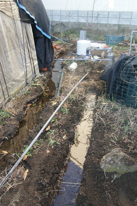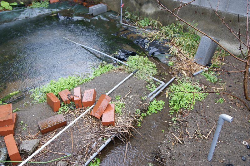 水量がアップしたおかげで、池のオーバーフロー(地面に染込ませていただけ)が追いつかなくなり