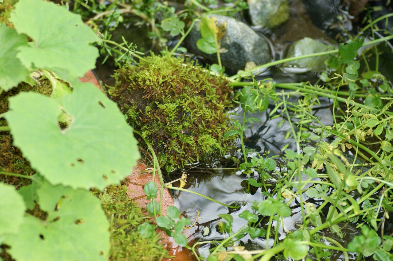 湧水に憧れ、小川に憧れ再現してみたところ、色々な生物が自然と集まってきました。