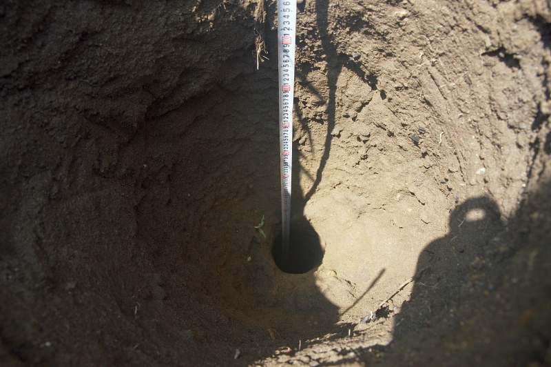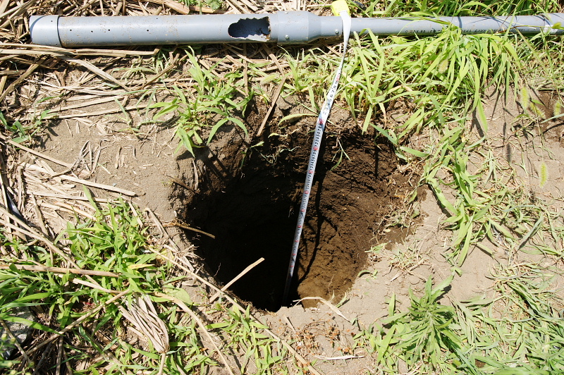 深度2m60cmで水が出てくるのを確認したが、
