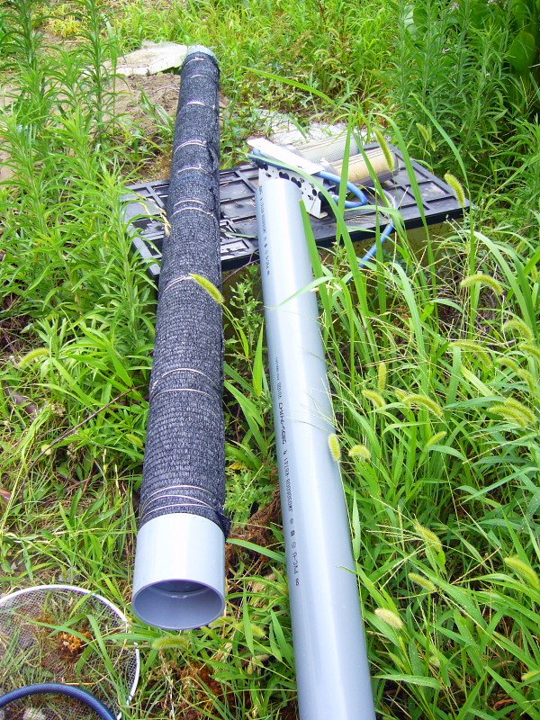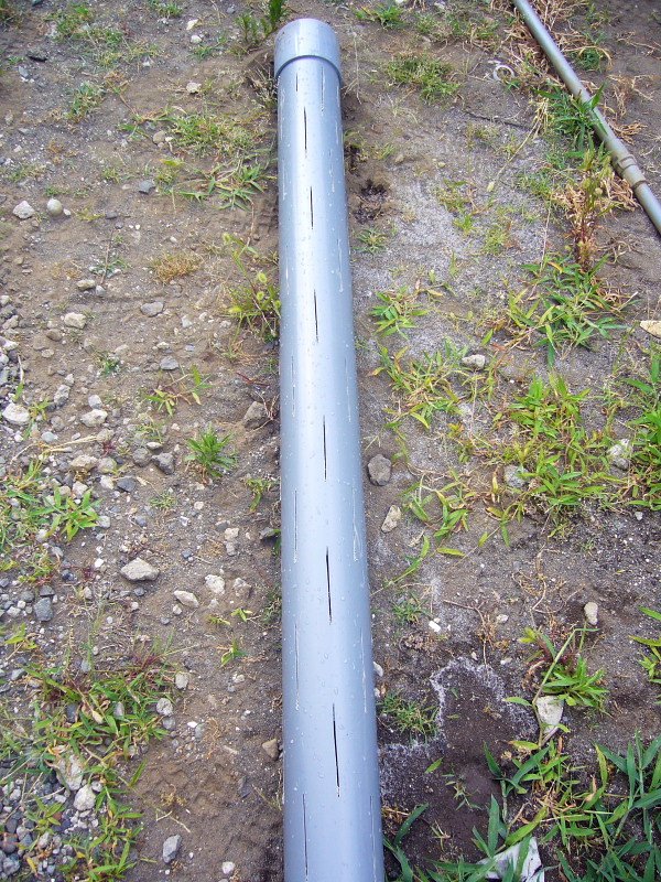 井戸枠下2mにスリットを入れ、砂混入防止で遮光ネットを巻きました。