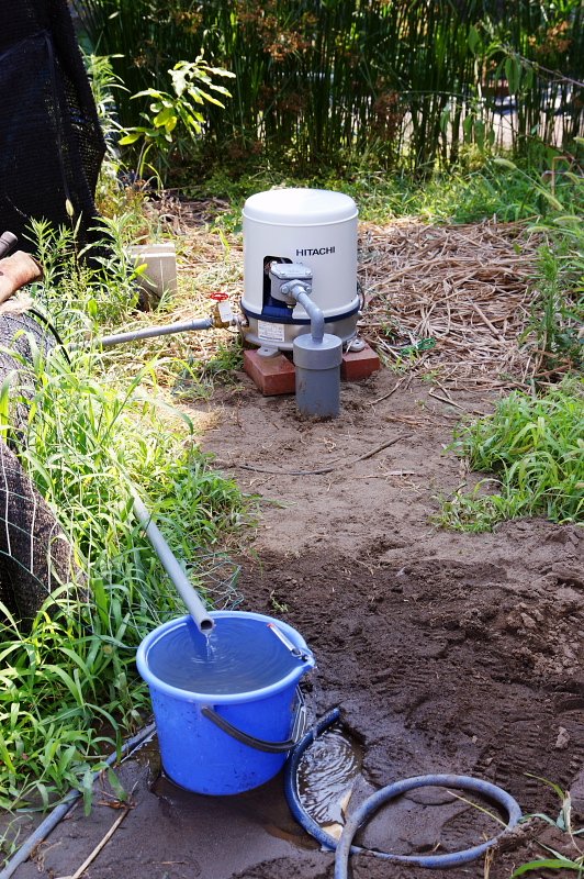 戸を掘り終え、電動ポンプを購入し流していたが、