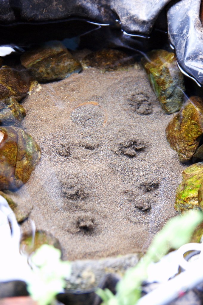 海の砂と同じ細かい砂が出てきていて、堀り器に水抜き用の穴が開いている部分より