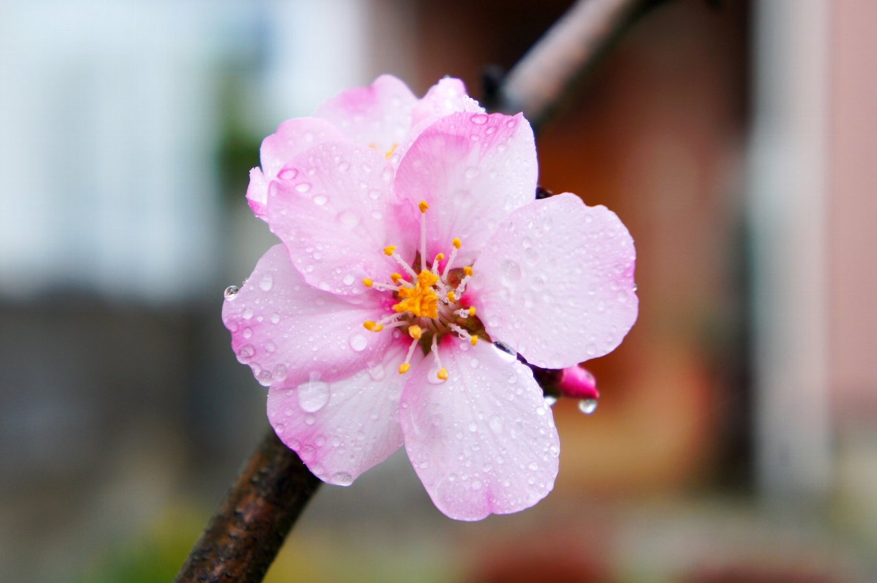 庭にある桃の木に花が咲きました。