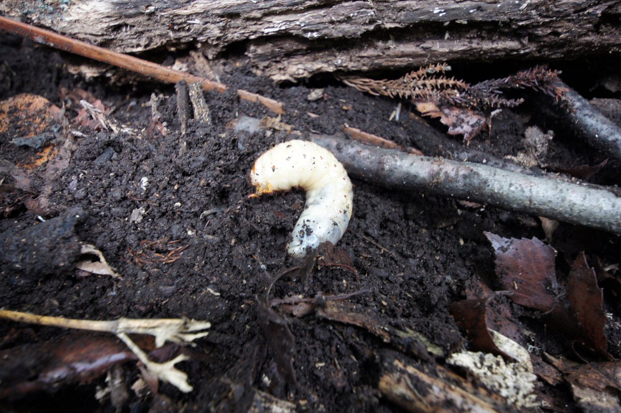 朽木をどかしてたら、コクワガタの雄と雌がいました。