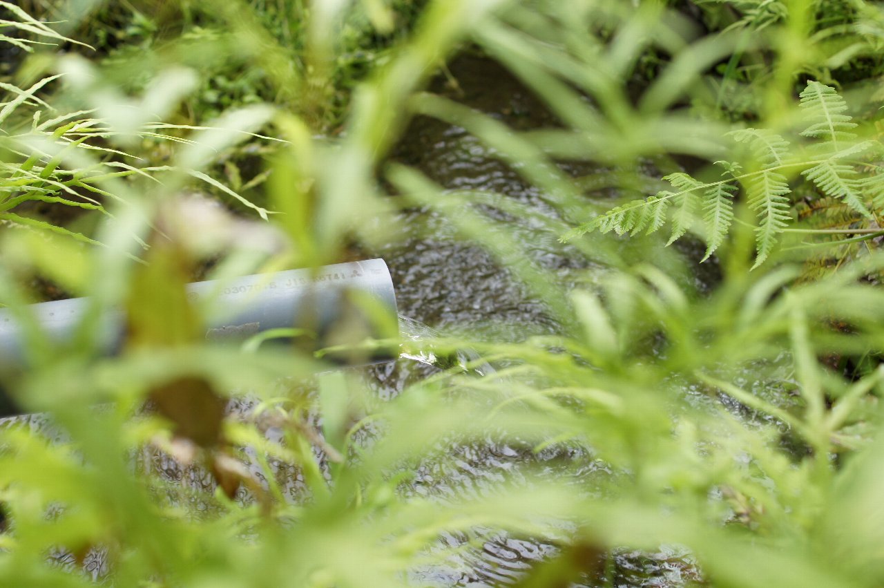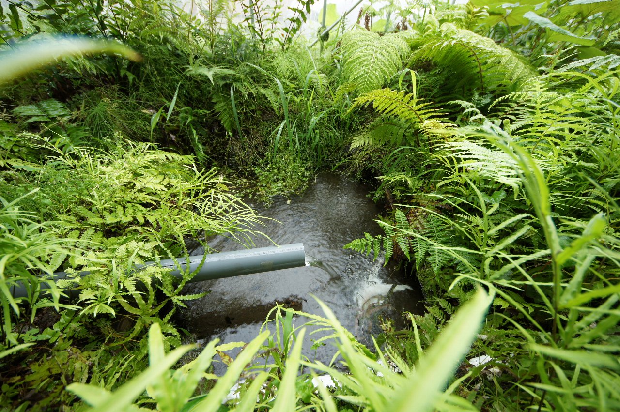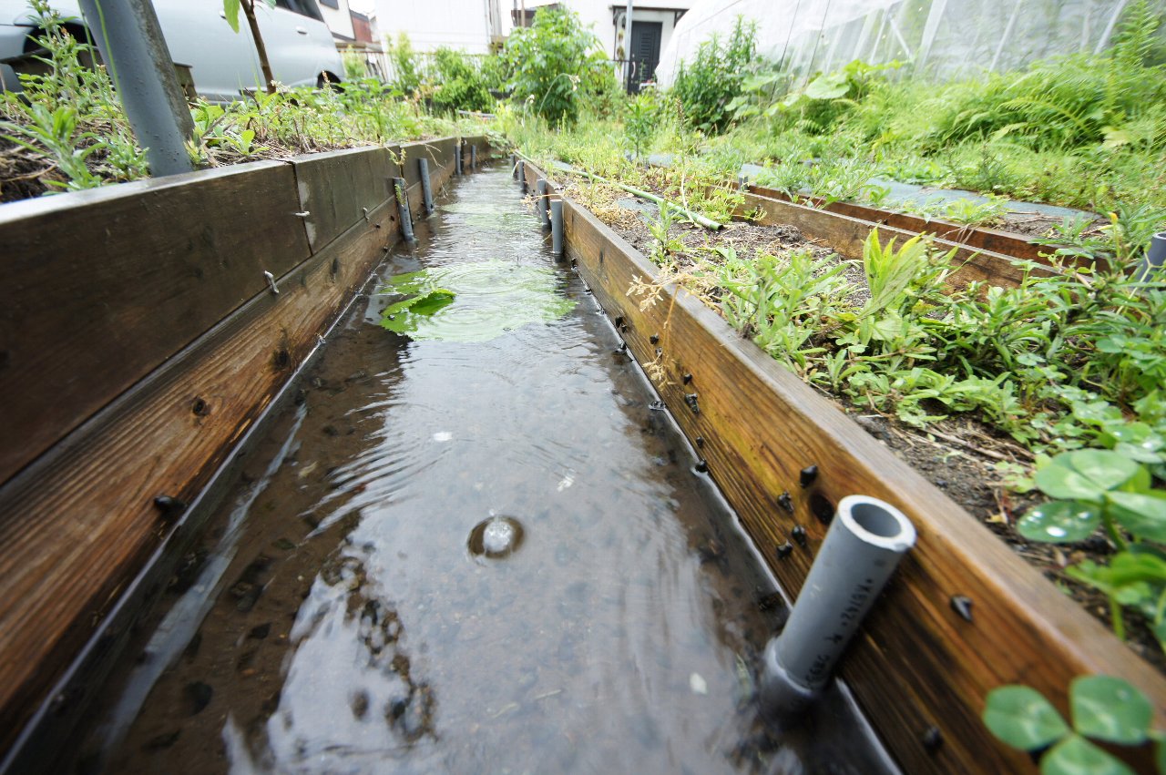 仕切りを取り付け、ホタル幼虫やナミコギセルの生息地と区別し、