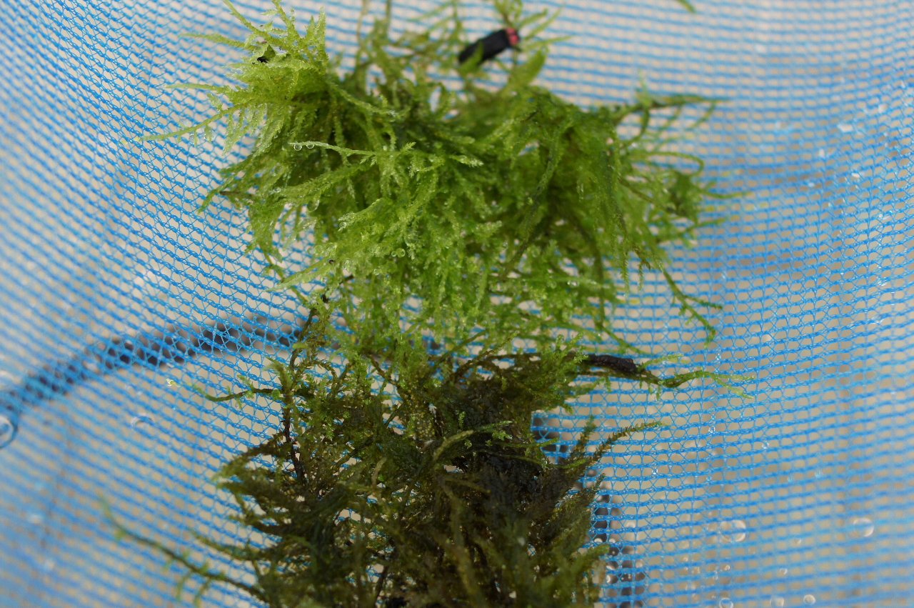 飛べて産卵もできるように、干し網にコケを入れて産卵させています。