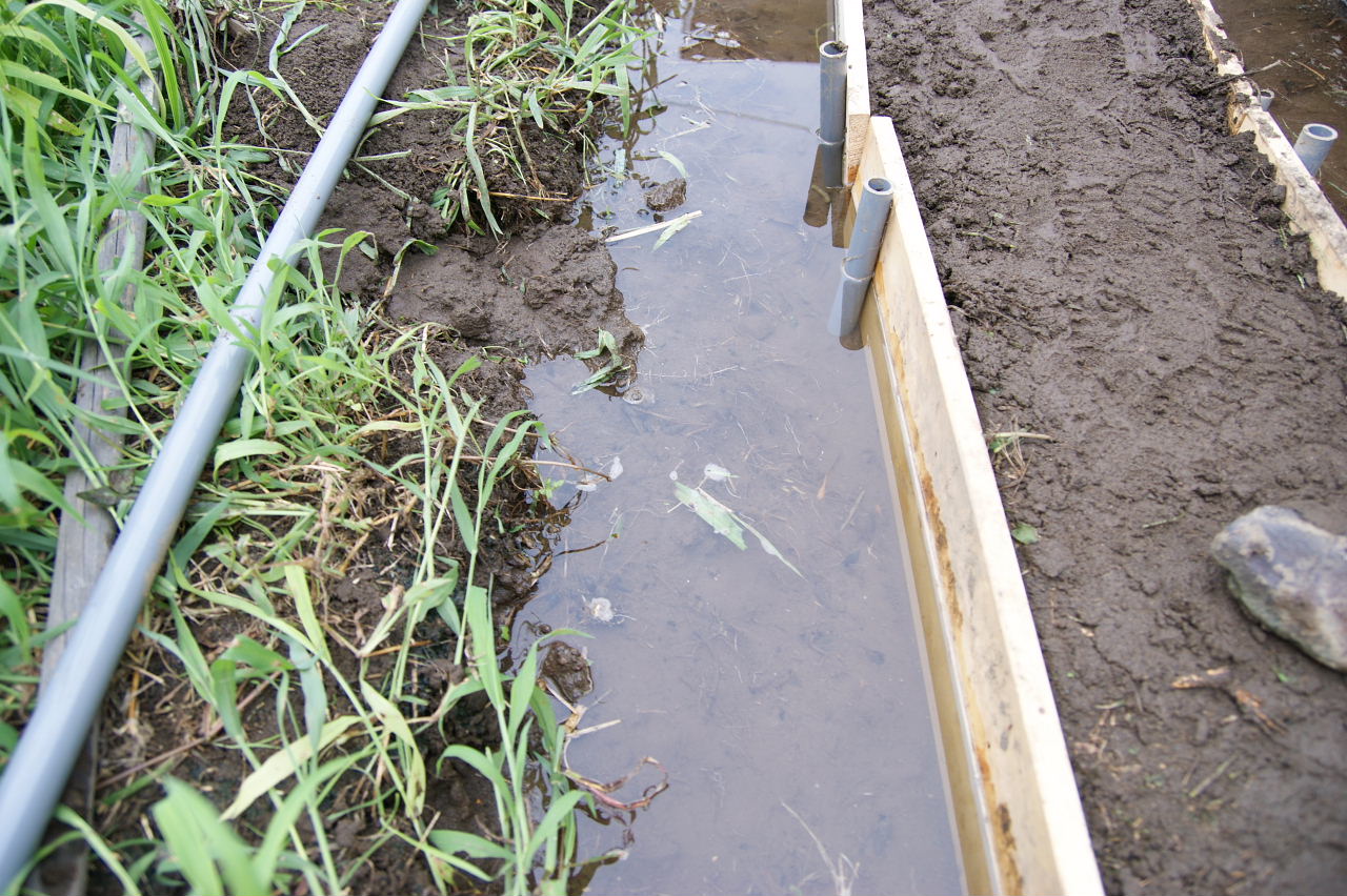 孵化側と壁際の周りだけ覆えば流される事は少ないと思います。