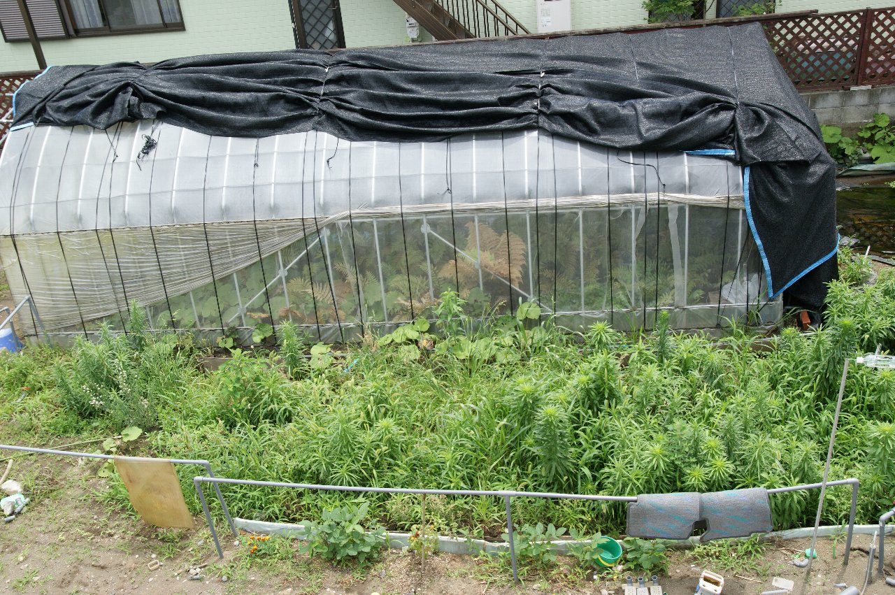 ハウス内のシダ類は、遮光ネットを外した影響で