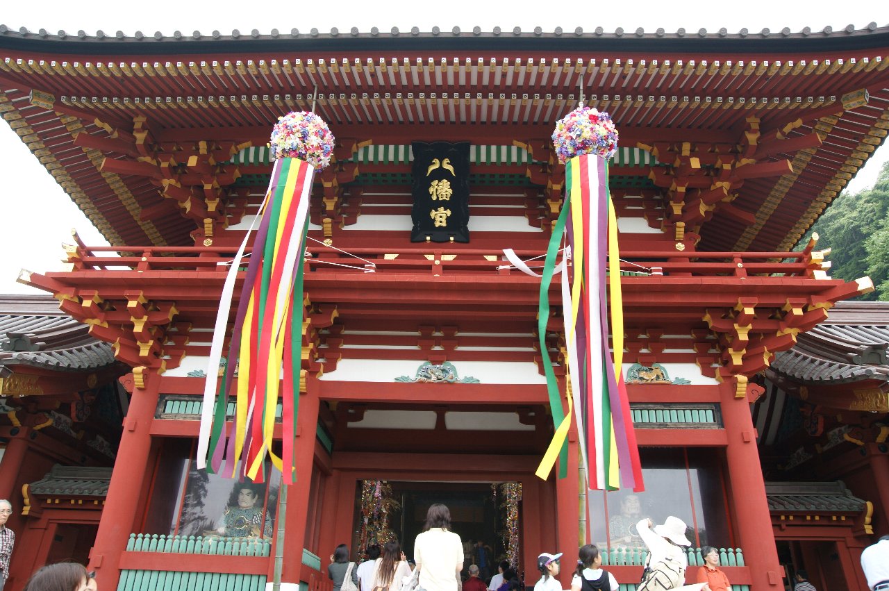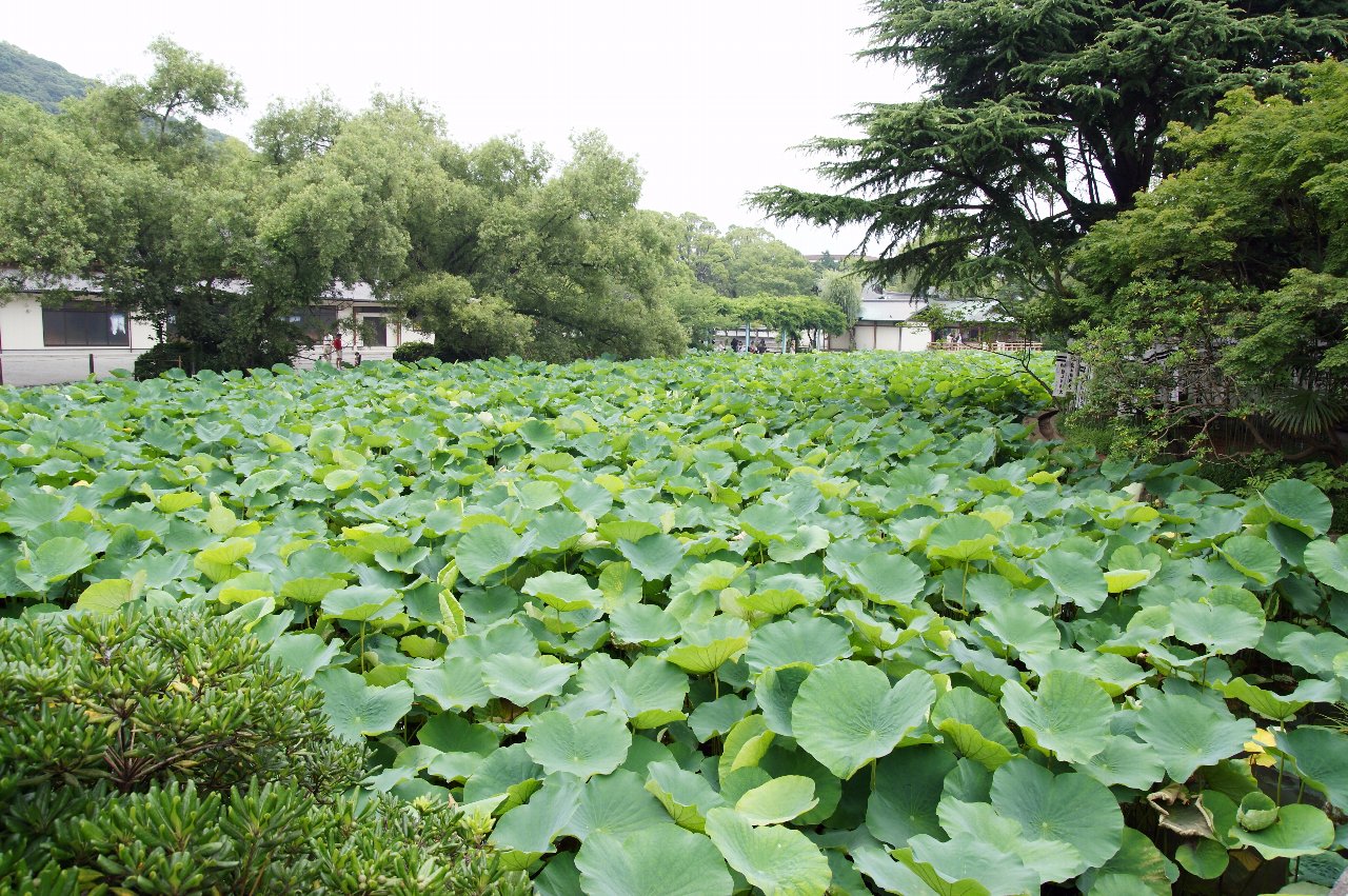 八幡宮内の池にハス?があり、もうそろそろ咲きそうなつぼみが何個かありました。