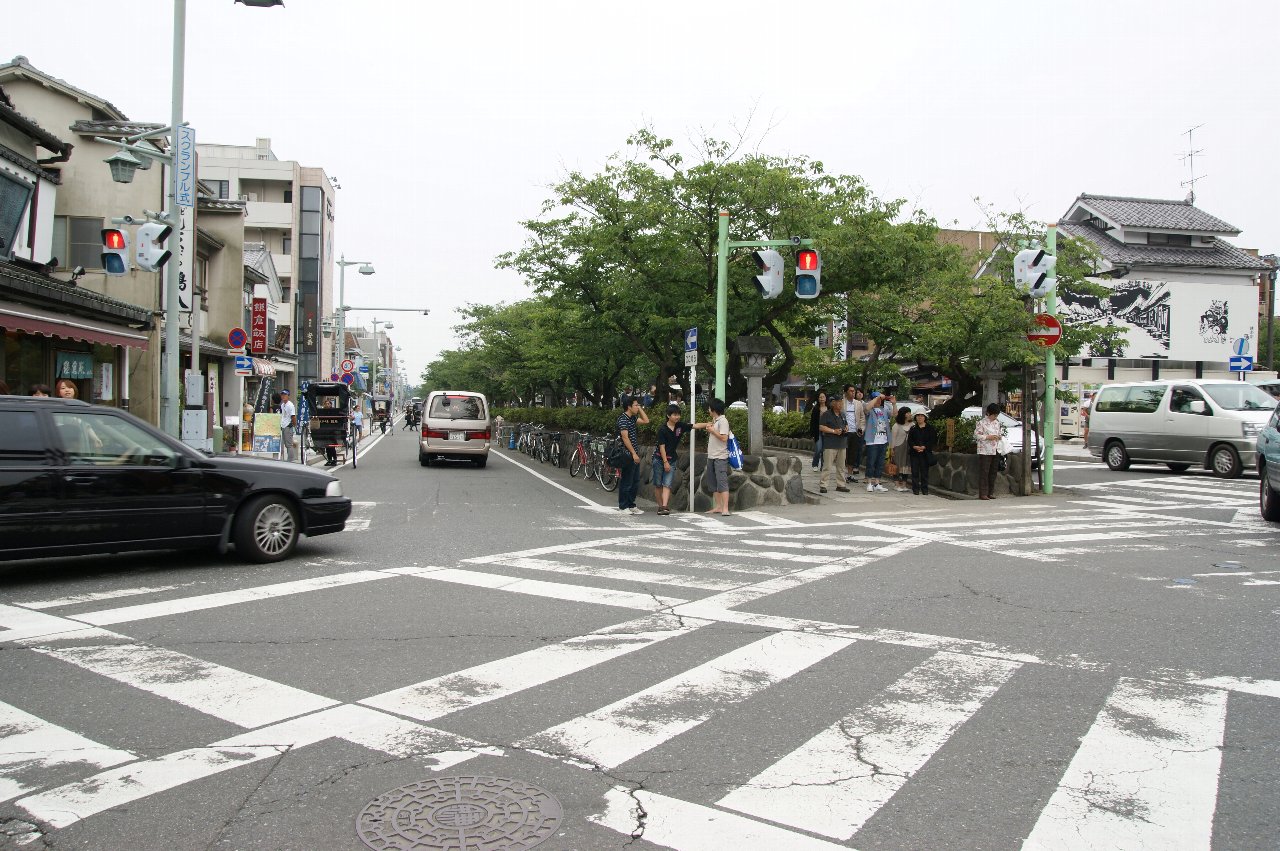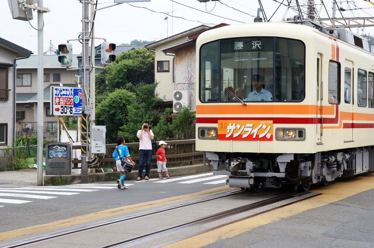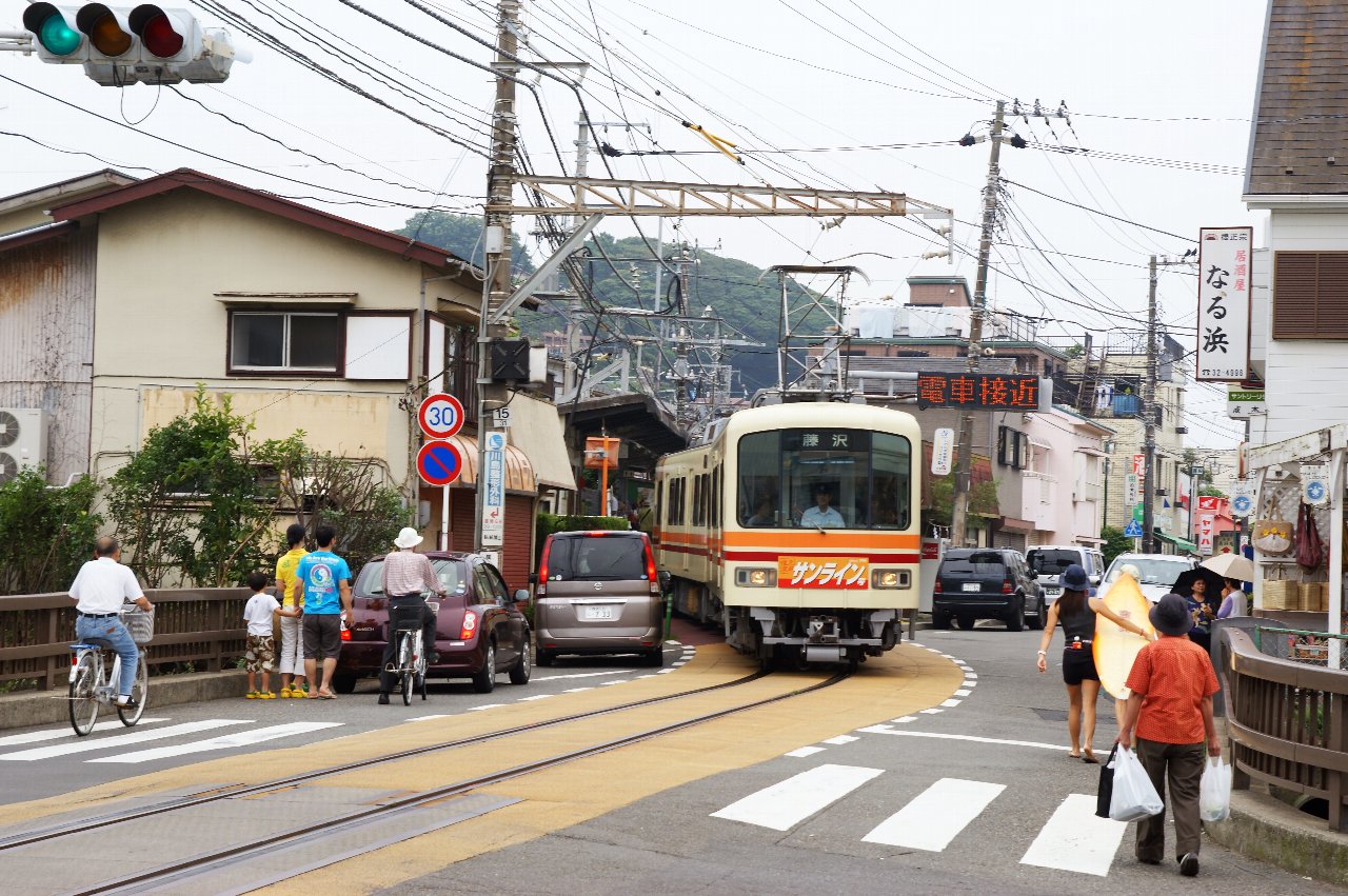 江ノ島駅方向から腰越方向の道路へ出てくるところ