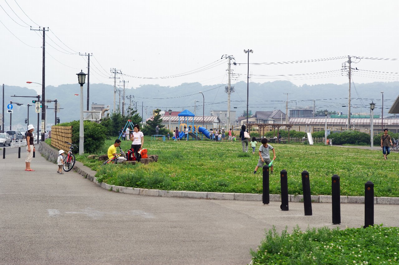 由比ガ浜海水浴場の地下駐車場上が公園になっています。